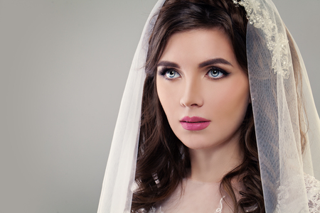 メイクアップ ブライダル ヘアスタイルとヴェールでかわいいの婚約者 クラシック スタイル の写真素材 画像素材 Image